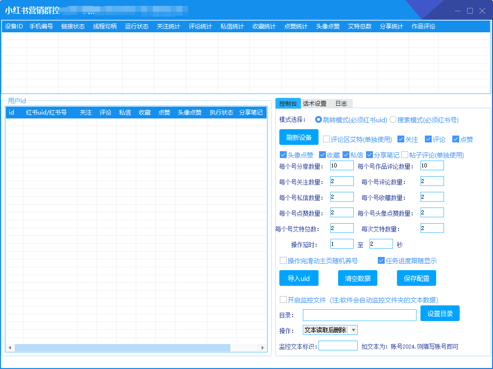 我们的群控留痕系统,支持全自动一键批量关注、私信、点赞、评论、收藏等操作。只需轻轻一点,即可实现多任务同步执行,大大提高你的运营效率。无论是想要扩大品牌曝光,还是提升个人影响力,都能轻松应对。