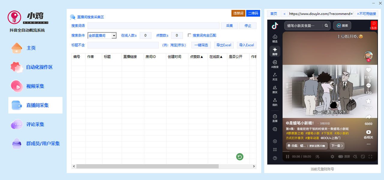 9.批量关键字搜索采集视频或采集主播主页视频链接,并导出excel表格。