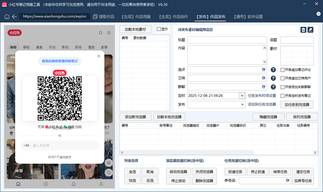6.全自动发布(当设置好素材跟文案后,可以添加发布笔记任务,也可以添加定时任务!)