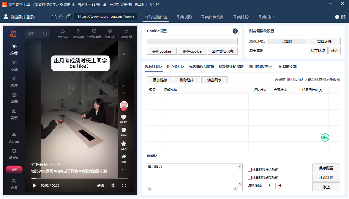 快手综合截流工具-自动化评论区采集截流|监听新评论|自动UID关注|自动评论|自动点赞|自动截流养号为一体的快手综合获客工具