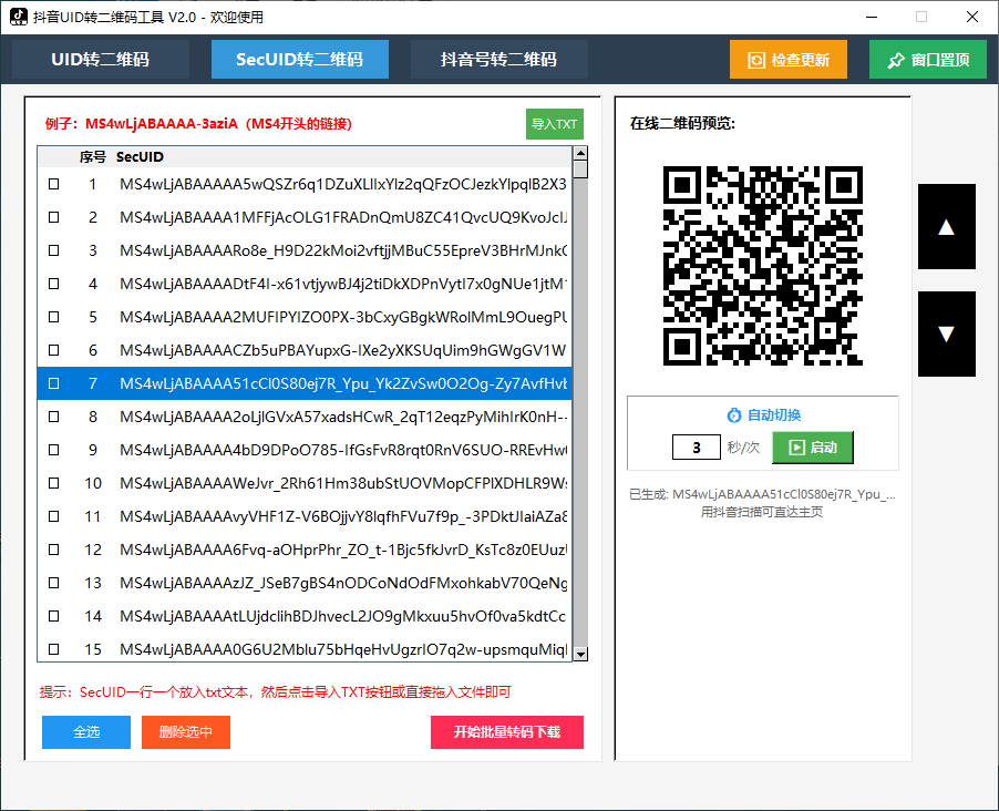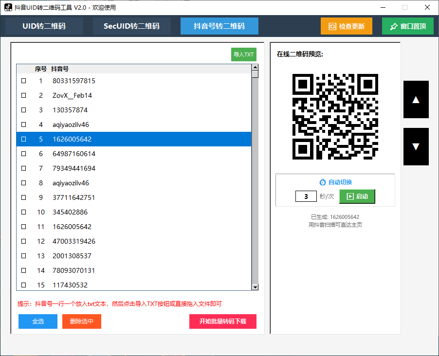 自动发货 抖音uid批量转二维码永久卡 单次至少购买 1 件,规格与优惠券会实时刷新价格与库存。 ¥ 10.00 购买数量 单次至少购买 1 件 优惠券 更换 使用 已优惠金额:0.00 元 联系方式 选择支付方式 推荐支付宝支付 支付宝备用支付通道1 余额支付